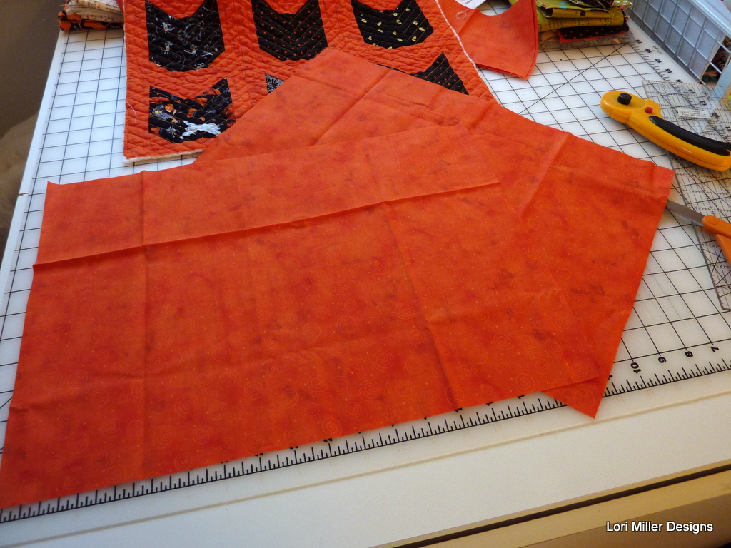 For the back, I used two pieces of the orange fabric 19″ x 13″.