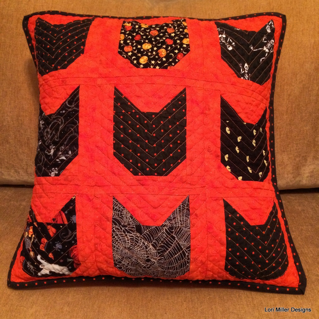 Can it really be October already? I dug out my Halloween fabric stash and decided I needed to put together a few holiday themed handmade items. I recently ran across a pattern for a pillow using a quilted cat block by Elizabeth Hartman of Oh Frannson! I envisioned it with a black cat theme and I was off to my stash to pull the perfect fabrics.