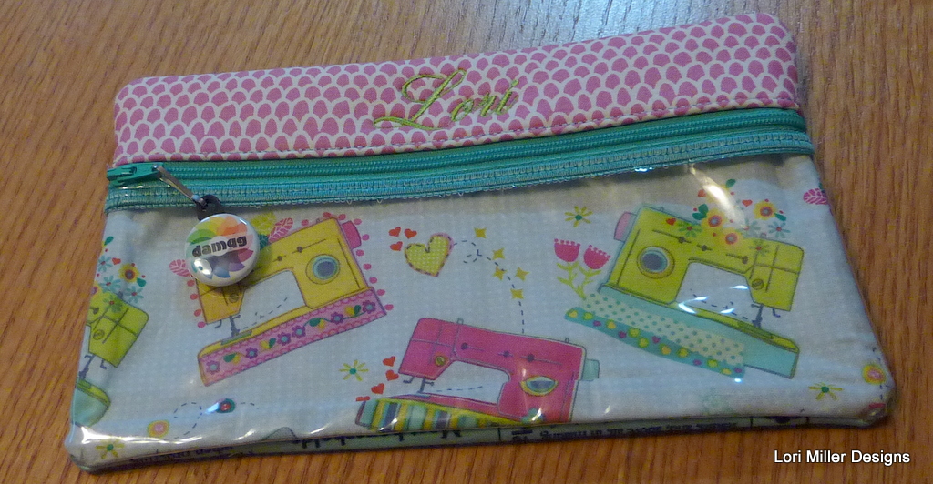 Here is the bag that Vicky made for me. It features a see thru vinyl zip pocket and on the back there is another pocket.