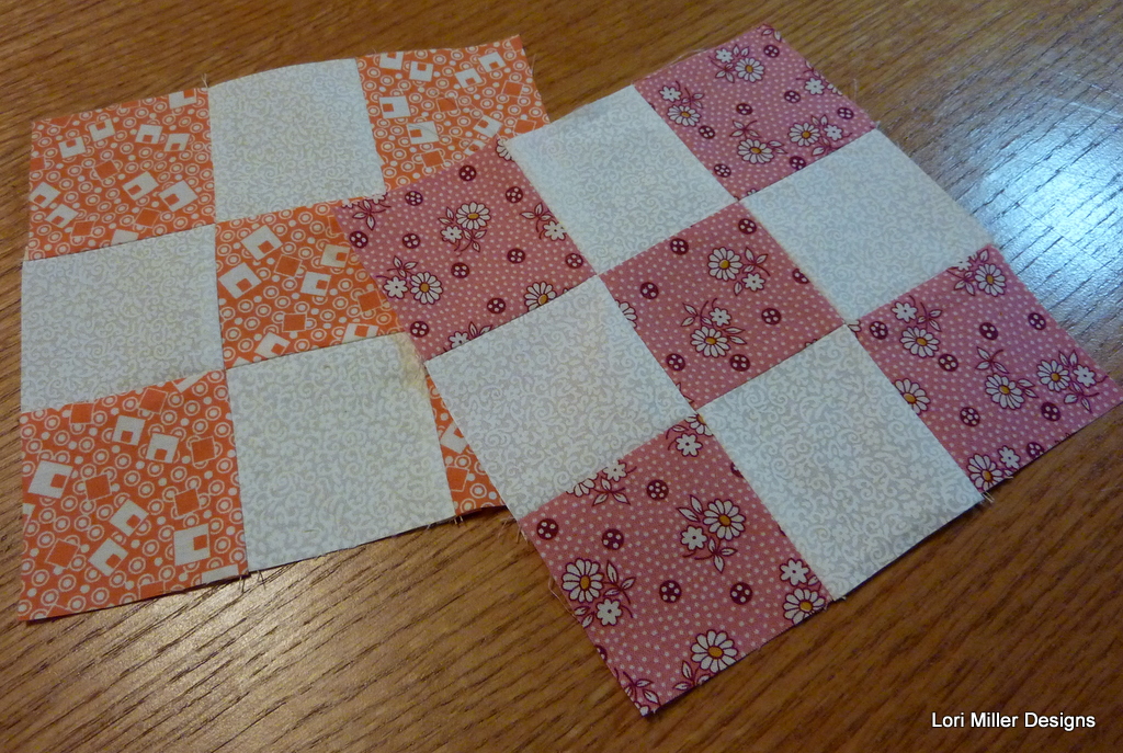 Is it Spring yet?? I laugh because it is snowing right outside my window right now. Lets think happy thoughts like more quilting. It is time for the next block of the month (BOM) for my Grandma Town Series. This month is a couple of quick blocks, a Nine Patch and two Color Block rows. Both of these are simple and will give you time to catch up with the two blocks already released. I hope you are sewing your Grandma Town memories along with me row by row.