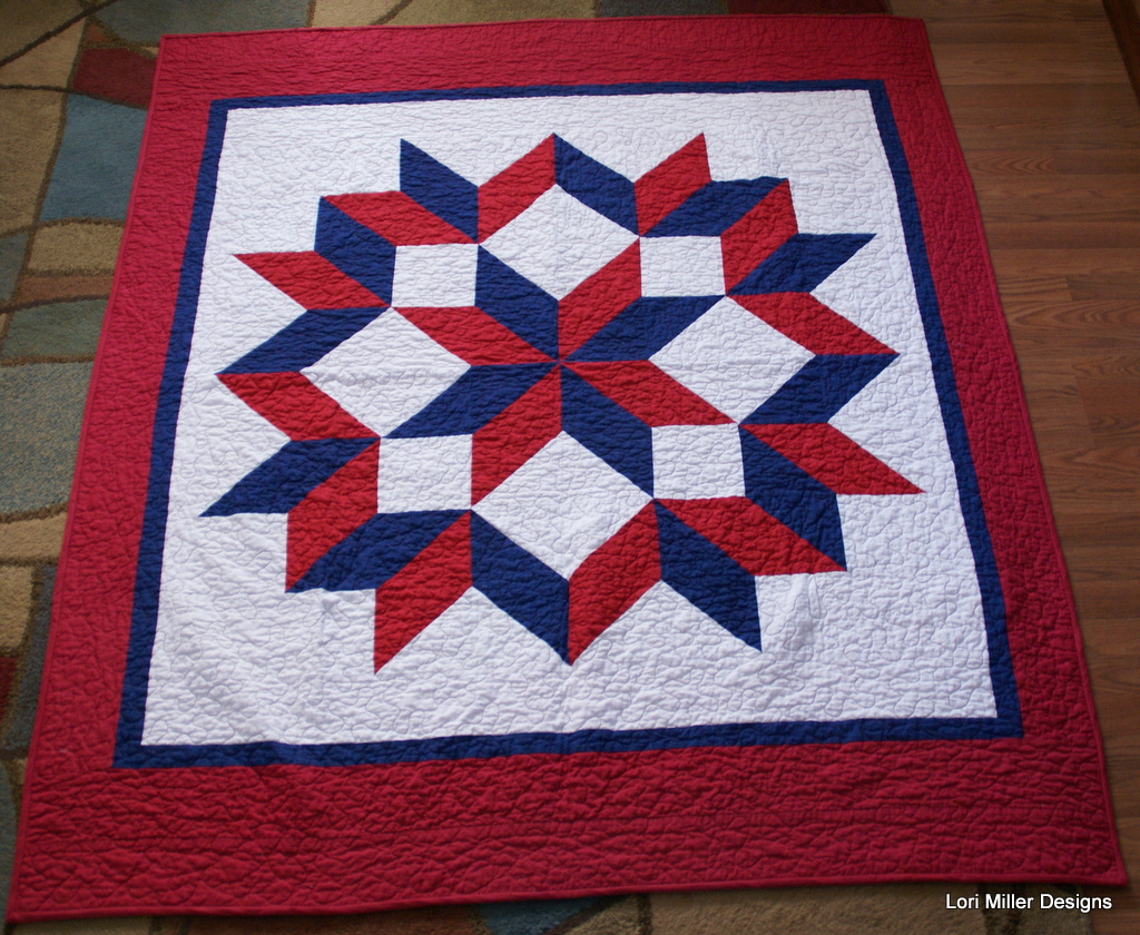 Today I thought I would share a few of the quilts I have made for one of my Charity Groups. I belong to the Stitching Sisters Quilts of Valor group. This group was started by three sisters, Maureen, Sue and Terry and it meets once a month in Clawson, Michigan. We get together to sew, eat, and quilt. Our group is part of the National Quilts of Valor Foundation organization. The mission of the Quilts of Valor Foundation is to cover service members and veterans touched by war with comforting and healing Quilts of Valor. Many of our Stitching Sisters members have or had a loved one who was serving our nation during war time and making quilts was one way to do something useful and helpful for those deserving men and women.