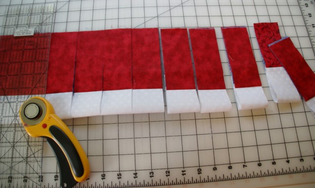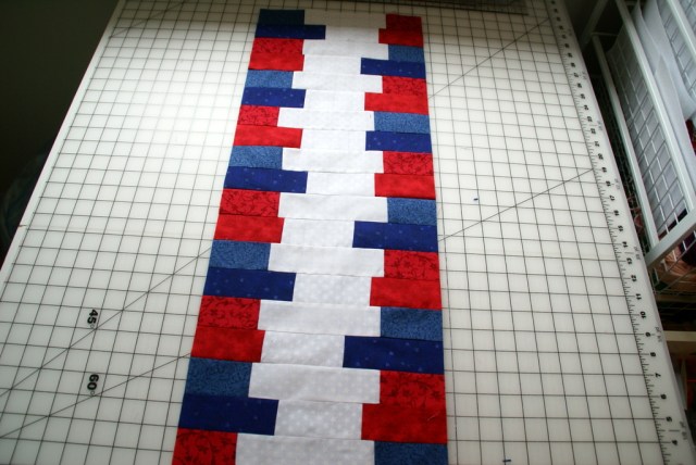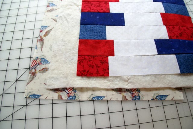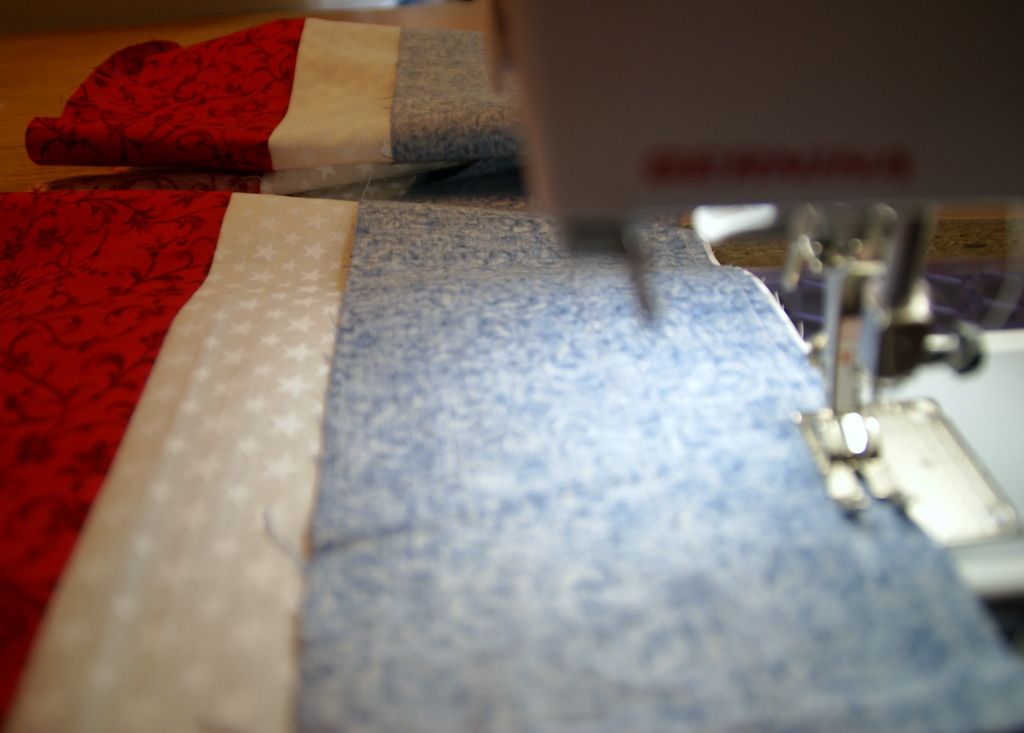You will need eight blocks of the canning jar for this quilt. They sit on either side of the little apron.