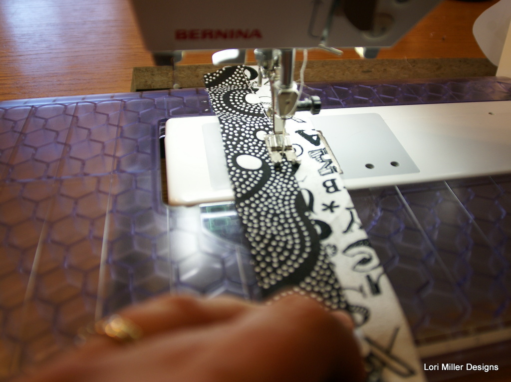 I pulled just the black, white and cream ones strips of selvage for this pillow. You create the selvage fabric by sewing them together in an overlapping fashion.