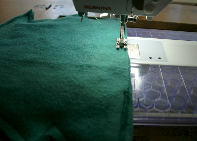 - Carefully fold over the raw edge (wrong sides together) about 1/4″ and baste all around. You can use pretty large basting stitches – yo-yos are pretty forgiving.