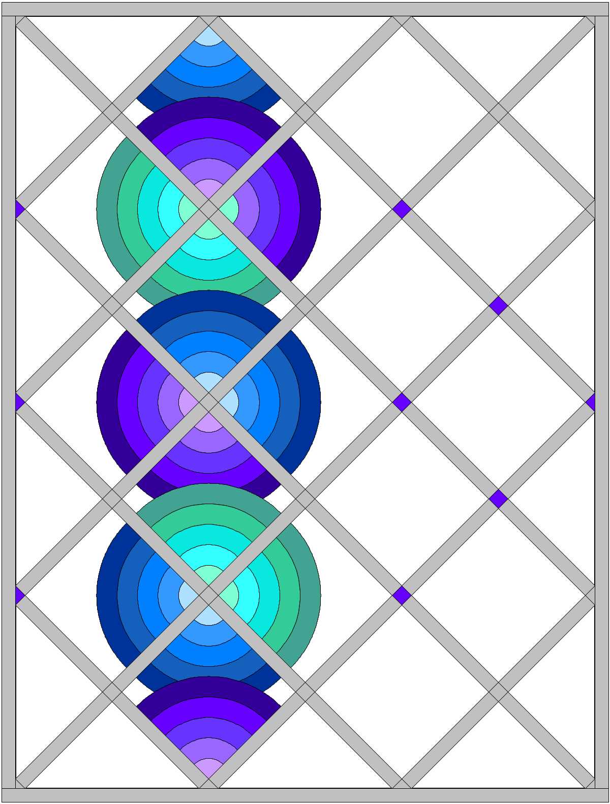 Here is my original design out of Electric Quilt. I thought the borders added something and the pops of purple added some color to the asymmetric pattern.