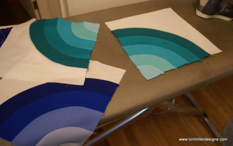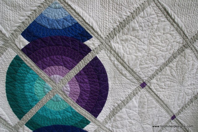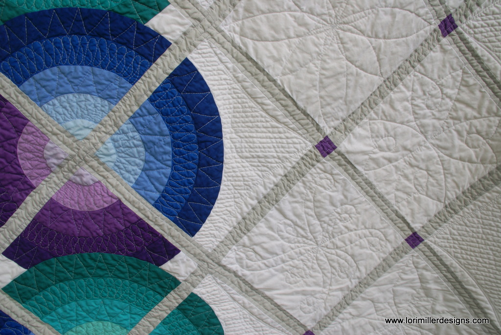 I had the idea of concentric circles of color gradations and started with the traditional drunkards path block and turned it up a notch. I used large 12″ blocks to really show off the colors. Electric Quilt Software made it easy to try a few things with the design until I really liked it.