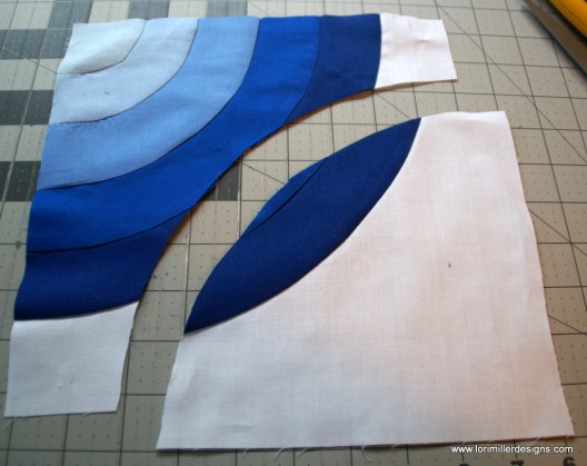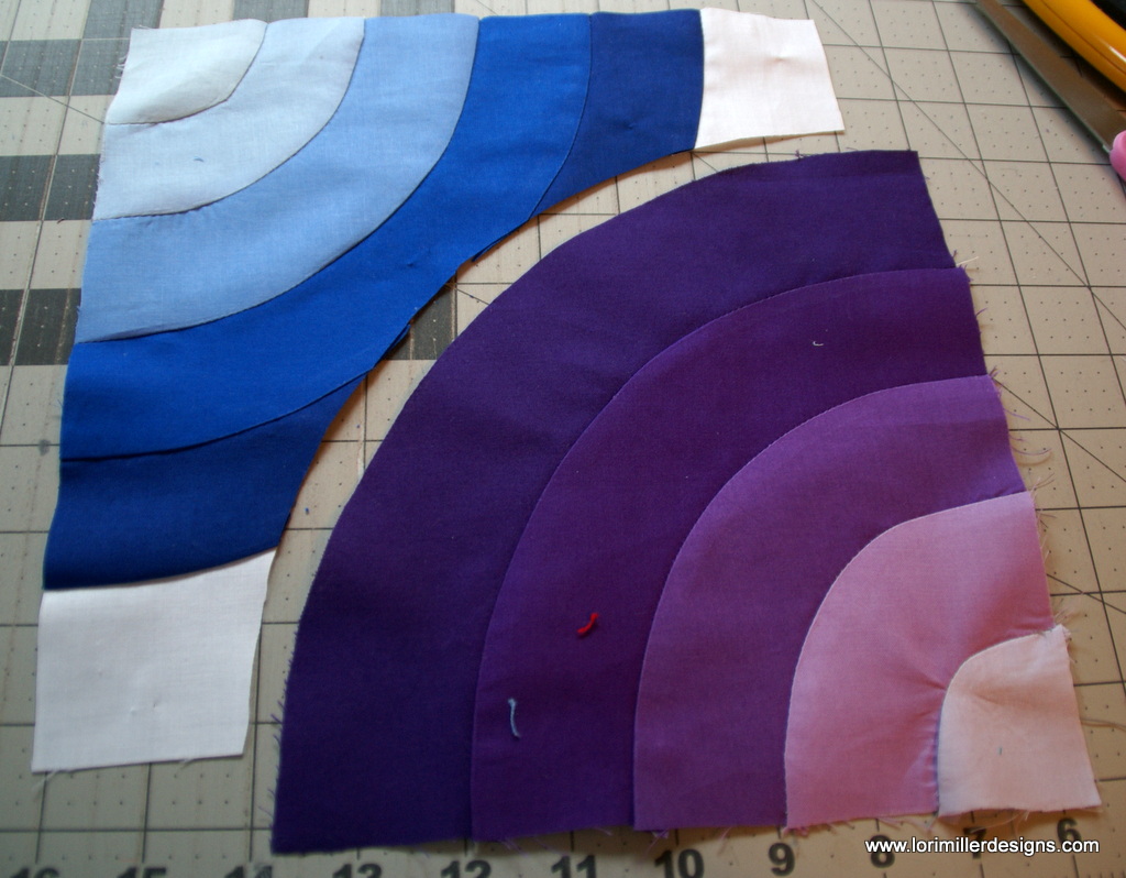 The fit together perfectly and you just stitch like you were sewing on another drunkards path round.