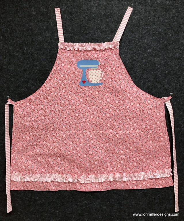 The whole apron. There is a cute crisscross way to tie it up on the back as well. The applique just added that fun retro vibe of the kitchenaid mixer and my sister simply loved it.