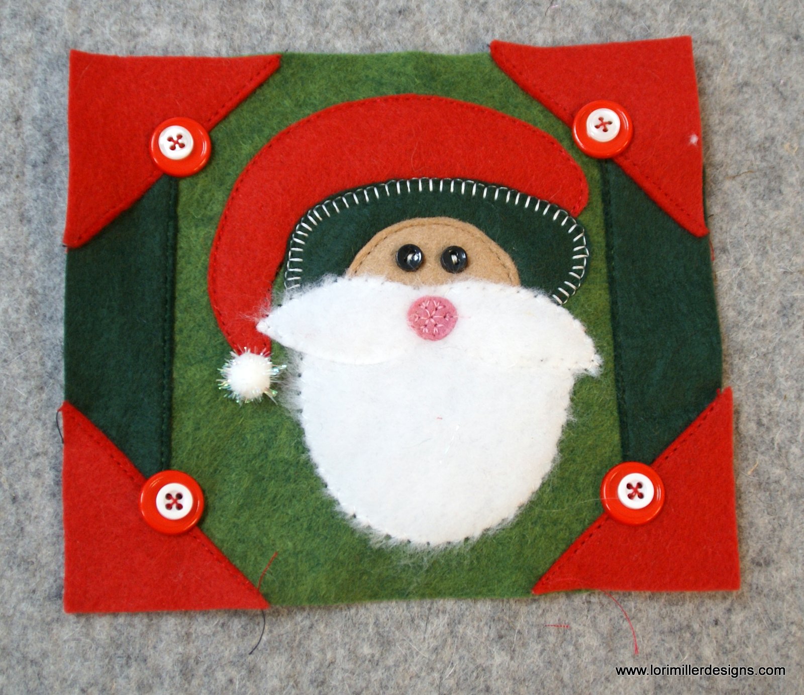 HO HO HO! Santa Claus is coming to town! This adorable Santa Baby Door Hanger is a festive way to celebrate the season. I am so proud to have it featured in Quilts & More Magazine. It is made with wool felt applique and embellishments. A great gift idea for friends and family too.
