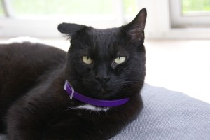Topstitch the hem with your sewing machine. Sew as straight as you can. I used a stitch length of 2.5mm. I use my hands like this to guide the fabric to keep the edge of the hem next to the presser foot. Pull the pins out as you go so you don’t have to stitch over them. Trim your threads.