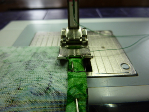Follow the same steps as you did for the ends of the table runner, only this time you will be pinning the long sides to sew.
