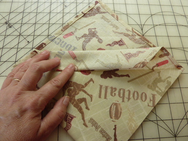 - Take one light blue 13″ square and one dark blue 13″ square and place them right sides together.