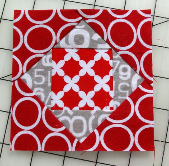 It made an adorable pincushion and I use some very easy techniques to piece it all together that make it a jiffy to stitch up in an afternoon. You can make multiples at once very easily. Finished size is 5 ” square.
