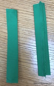 1. Make a 1/4″ double rolled hem on each of the short ends of the casings.