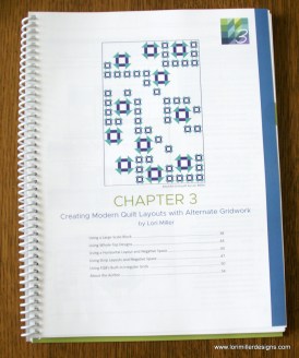 I wrote Chapter 3 Creating Modern Quilt Layouts with Alternate Gridwork. Wow, that’s a mouth full but it includes a chapter jam packed with ideas to use EQ8 to create modern elements like asymmetry, exaggerated scale, negative space and minimalism in your quilt designs.