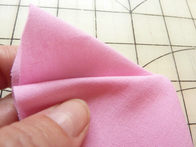 - Fold it in half, wrong sides together. Next, you will need to make two pleats in the fabric but leave a point making it into a quarter pie shape. I will talk you through it.