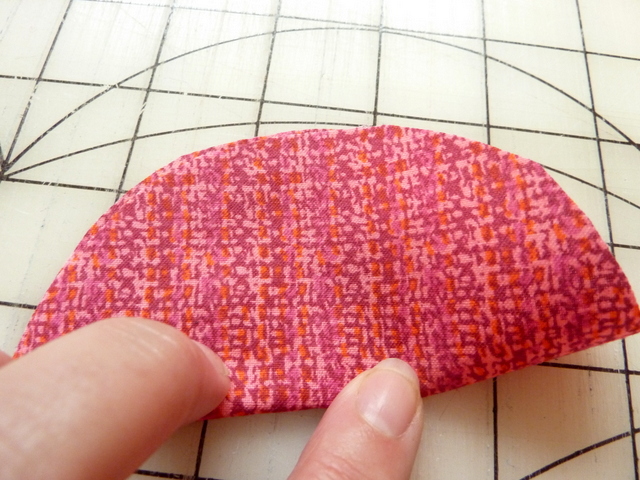 - Fold the small circle in half, wrong sides together.