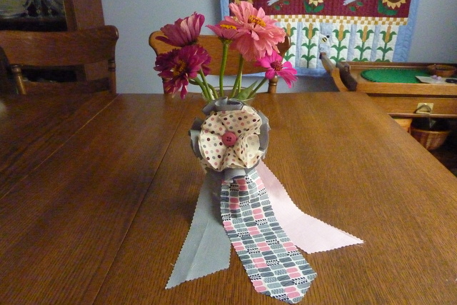Make it modern in pink and grey. I think the freshly picked zinnias from my garden make it special.