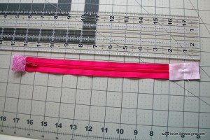 - From the left side of the pocket, measure 2 inches, 3 1/2″ and 5″ at the top and bottom of the pocket. These will mark the stitch lines to make the channels for the silverware.