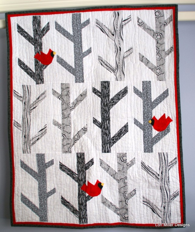 The little cardinals are just machine appliqued onto a few of the trees.
