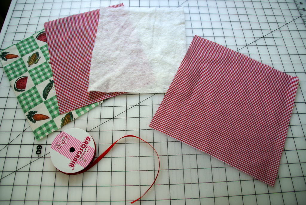 - 1 — 10″ x 10″ rectangle of red print fabric for pocket